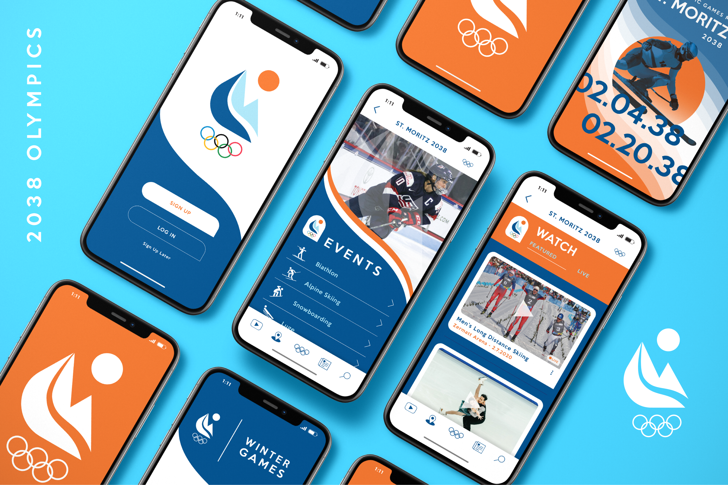 The St. Moritz 2038 Olympic Winter Games brand identity was created as a concept to envision the future of this prestigious event. The design style captures the crisp, cool essence of St. Moritz's climate while reflecting the refined sportiness inherent to the Olympic Games. My goal was to create a cohesive and striking visual identity that would resonate with athletes, spectators, and global audiences alike.